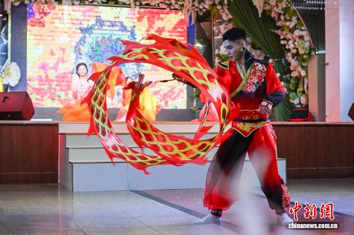 图为齐体教死演出跳舞《联合花启彩云北》。中新社记者 李嘉娴 摄