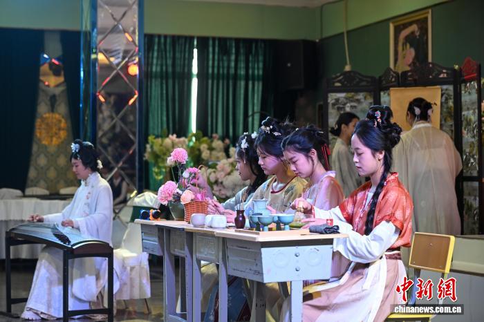 图为齐体教死上演跳舞《联合花启彩云北》。中新社记者 李嘉娴 摄